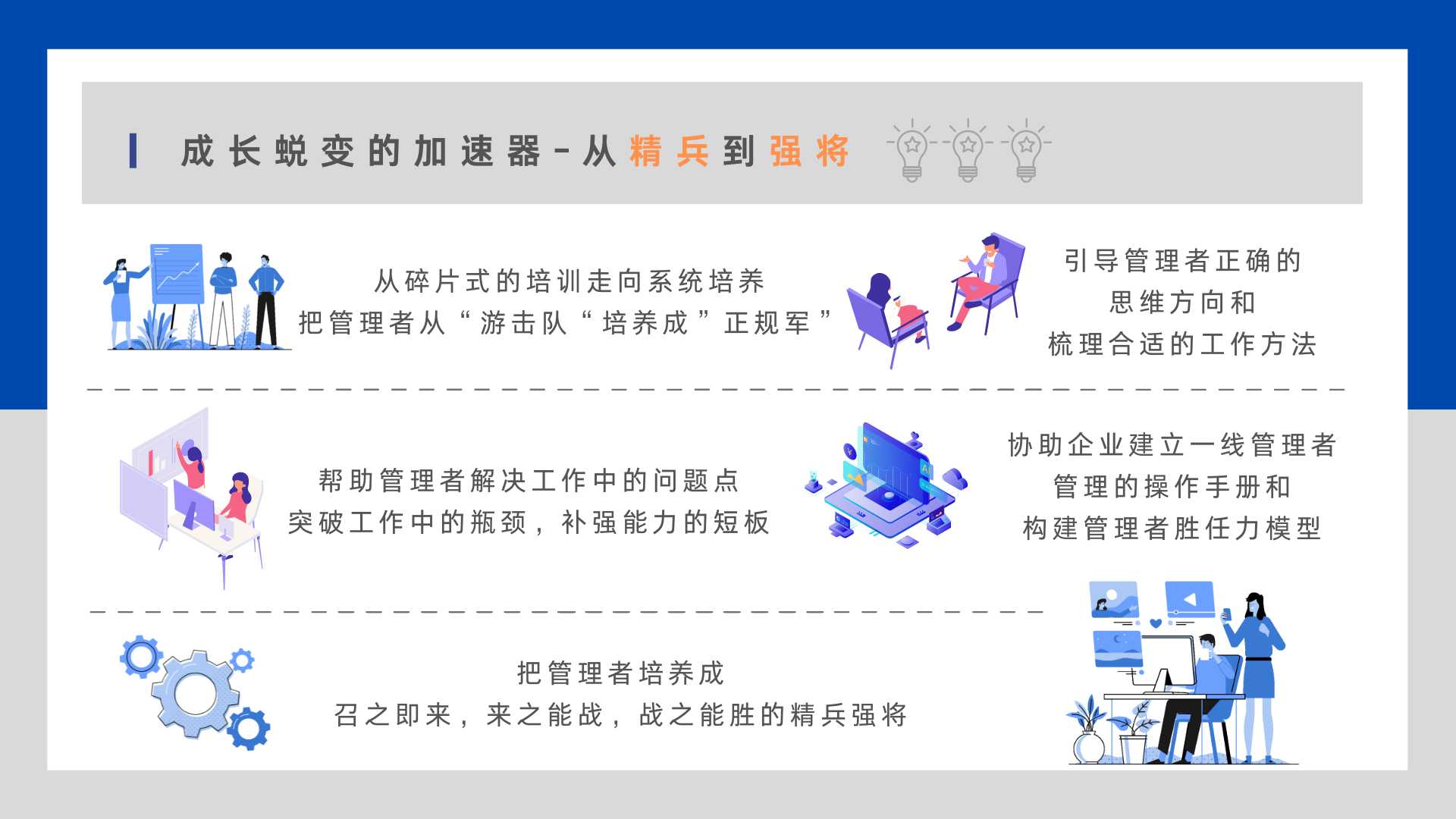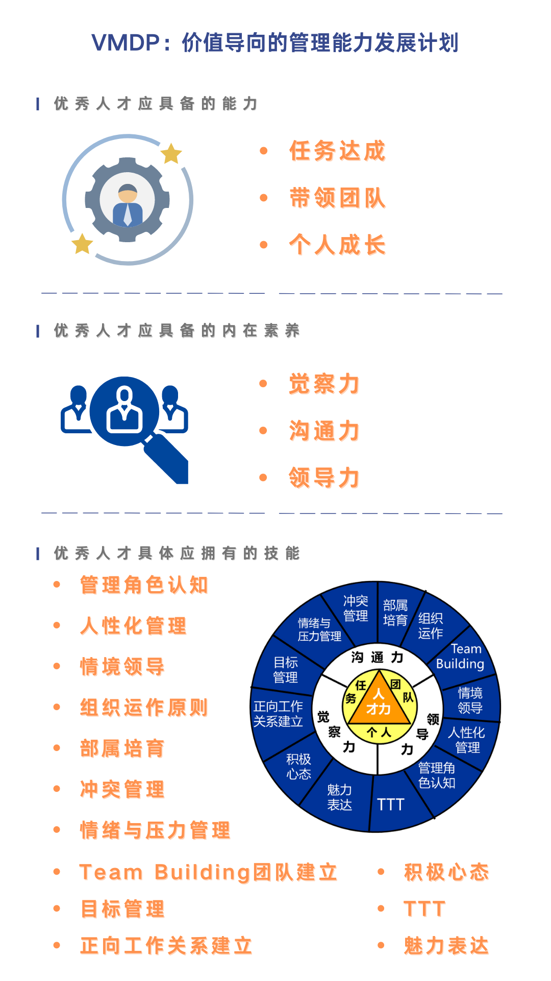 主管需要一套有系統(tǒng),有效率的方法,幫助達(dá)成績(jī)效,好主管就像站在艦橋上指揮調(diào)度的艦長(zhǎng),必須確保所有船員手眼協(xié)調(diào),才能發(fā)揮最大力量,VMDP「價(jià)值導(dǎo)向的管理能力發(fā)展計(jì)劃」教導(dǎo)主管如何「規(guī)劃」、「組織」、「指導(dǎo)」、「跟進(jìn)」員工,迅速學(xué)會(huì)主管所應(yīng)具備的能力與知識(shí)。