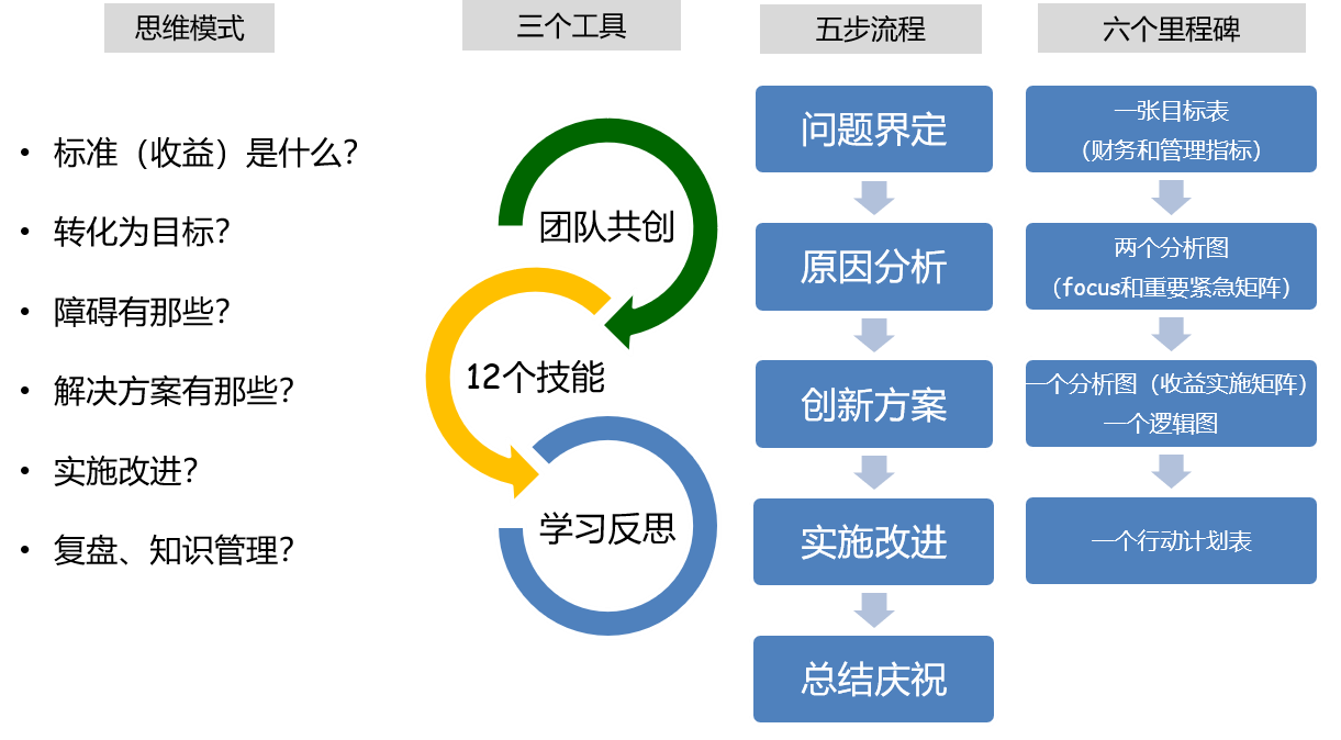 幫助管理者進一步強化問題解決意識,明確解決問題、提升績效的重要性,梳理相關的方法、流程、工具、技巧。