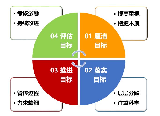 解決問題:管理者“目標不明確,分解不到位,督促不及時,考核不充分”