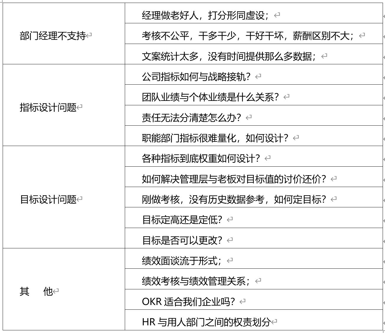 在困擾企業(yè)的諸多人力資源問題中,績效考核、績效改進(jìn)是老板最為頭痛的問題之一。很多企業(yè)管理者認(rèn)為績效改革勢(shì)在必行,HR也認(rèn)為績效考核必須要搞,往往不知道如何有效推進(jìn)績效管理項(xiàng)目,不知道如何有效分解目標(biāo)任務(wù),計(jì)劃與考核脫節(jié),考核與數(shù)據(jù)脫節(jié),業(yè)務(wù)部門普遍考核走過程,結(jié)果費(fèi)神費(fèi)力,沒有使員工和組織績效得到提升,因?yàn)樵诳冃ы?xiàng)目的推廣時(shí)往往難解決如下的問題: