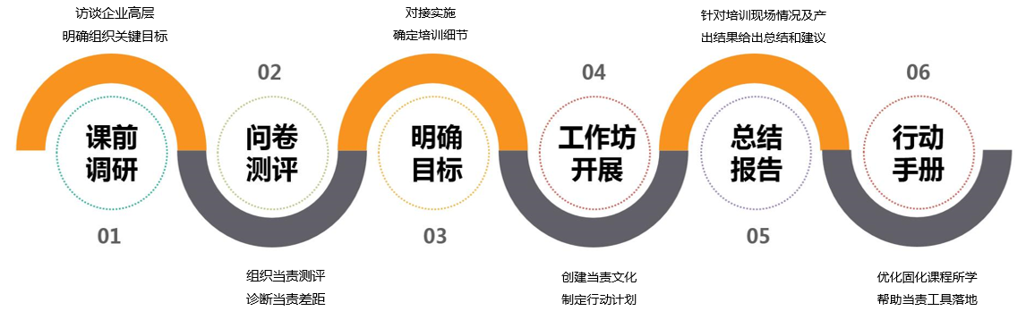 《當責領導?®——當責踐行》通過1套邏輯,2天課程,3個模型,4個步驟,幫助組織自下?上賦能,它是真正能夠幫助組織將領導力落地的?套?之有效的?法論和?具箱。