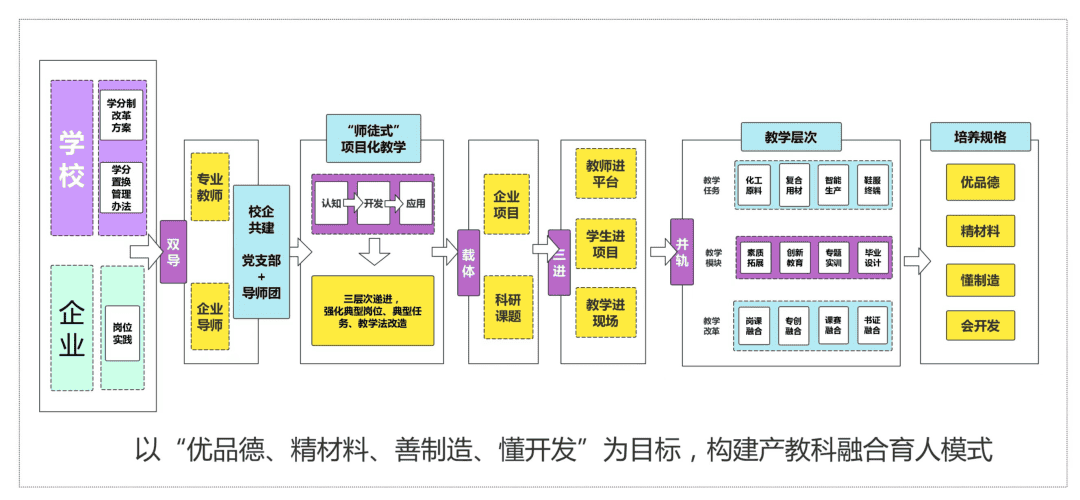 以“優品德、精材料、善制造、懂開發”為目標,構建產教科融合育人模式